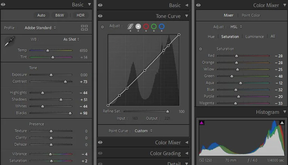 global edits means everything in the Basic Panel: white balance, exposure, contrast, and whatever additional adjustments are needed in the Tone Curve panel or the Color Mixer (HSL) panel to improve consistency